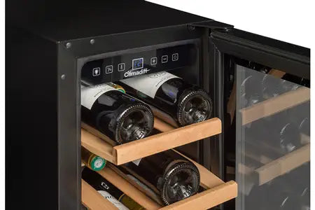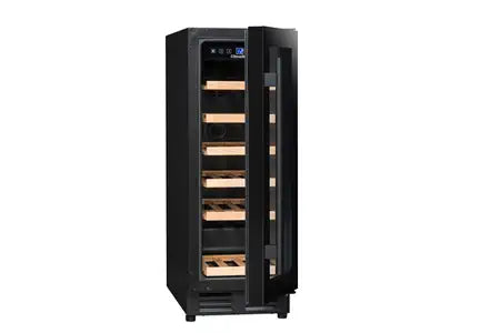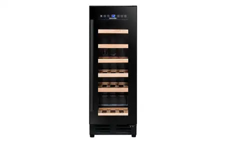 Cette cave à vin encastrable s’intègrera parfaitement dans toutes les cuisines grâce à son coloris noir et sa porte vitrée.