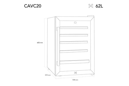Dotée d’une technologie de pointe, la cave à vin CAVC20 vous permet de conserver et déguster vos vins à température idéale. Cette cave peut accueillir jusqu’à 20 bouteilles avec sa capacité de 62 litres.