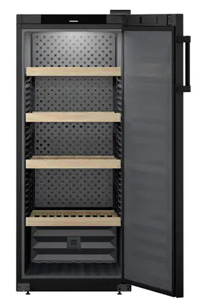 La cave à vin Liebherr WSBL4601-20 est une cave de vieillissement GrandCru. Elle est dotée d'une grande capacité de 166 bouteilles. Pourvue d'une porte pleine, de 4 clayettes en bois, d'une électronique tactile avancée à affichage digital et contrôle de l'hygrométrie, elle est également parée pour la connectivité grâce à l'option SmartDevice box. Livrée avec un filtre à charbon actif.