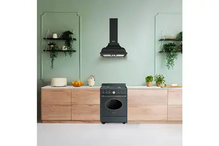 couleur anthracite et sa finition laiton. Elle dotée de 4 foyers dont 1 ultra rapide de 3500 W. Idéal pour saisir une viande ou faire bouillir de l'eau.
