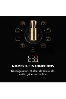 • Nombreuses fonctions : décongélation, chaleur de voûte et de sole, barbecue et