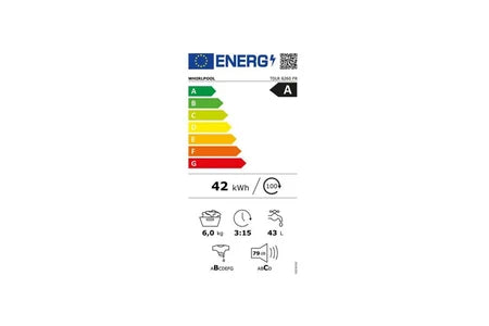 Whirlpool Lave-linge top 7kg 1200 tours/min TDLR6260FR - - Lave-linge top tdlr 6260 fr de whirlpool. Compact et performant, ce lave-linge top de 6 kg est idéal pour les petits espaces. Avec une vitesse d’essorage de 1200 trs/min et un tambour inox de 42 l, il s’adapte à vos besoins pour un linge toujours impeccable. Grâce à la technologie intelligente 6ème sens, il ajuste automatiquement la durée du cycle, la quantité d’eau et d’énergie pour des économies allant jusqu’à 50 %. Le moteur induction garantit un fonctionnement silencieux et durable, tout en réduisant les vibrations. Avec 14 programmes, dont hygiène 60°, éco 40-60 et chrono 30°, il offre des options adaptées à tous types de textiles. La fonction freshcare préserve la fraîcheur du linge en fin de cycle grâce à un brassage intermittent. Doté de nombreuses options pratiques comme le départ différé jusqu’à 12 heures, l’indicateur de temps restant et les réglages de température et d’essorage, il simplifie votre quotidien. Sécurisé avec des fonctions comme la sécurité enfant et l’anti-mousse, ce lave-linge est fiable et facile à utiliser.